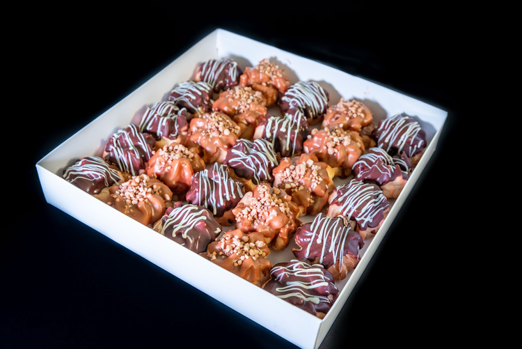 מגש 24 יחידות במילוי קרם פטיסייר וקצפת בציפוי גאנש  / במילוי מוס לוטוס